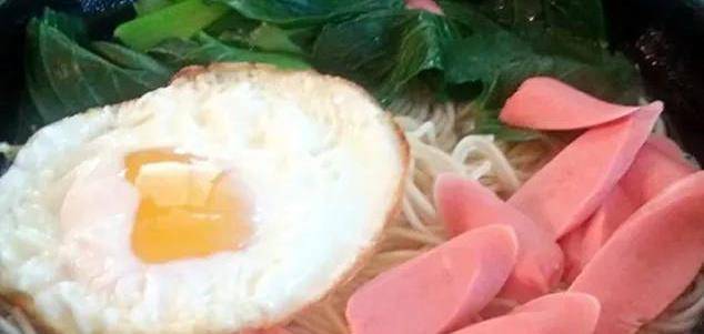 食材:幹面條一把,火腿腸3根,雞蛋3個,青菜3棵,生抽,香醋,香油,小蔥。