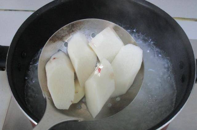 4.等煮開後開蓋把山藥入鍋大火燒開後加蓋用小火煮。