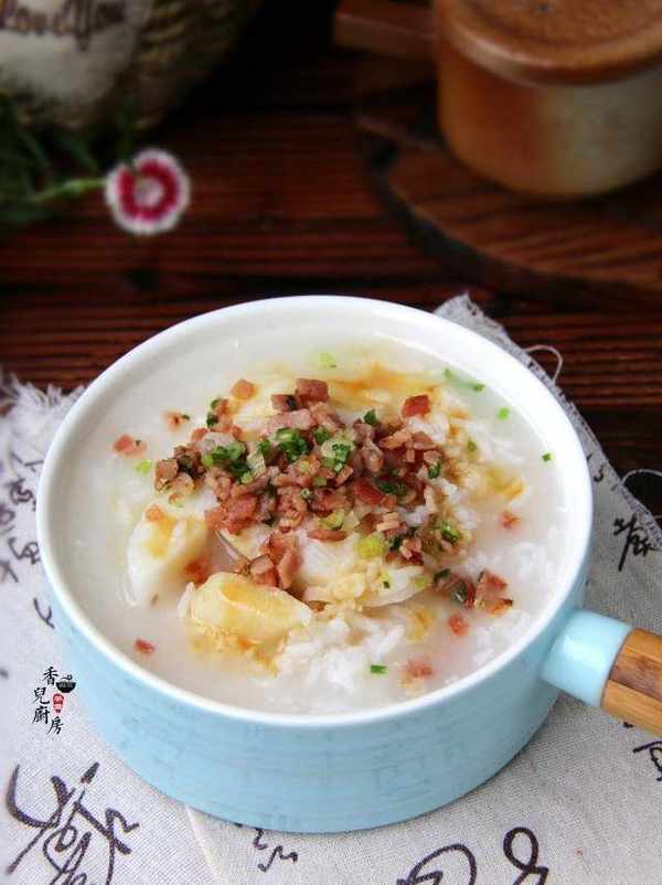 今天和大傢分享這道粥,也是我傢經常做的,用山藥和大米煮制粘稠,我用的是冷飯更方便簡潔瞭,最後用培根切碎和蔥花炒出香味加入裡面,淋上鮮醬油,咸鮮味的,軟糯的山藥早已和米粥相融,加上培根的咸鮮和蔥花特有的香味,喝上一碗,甚是滿足。