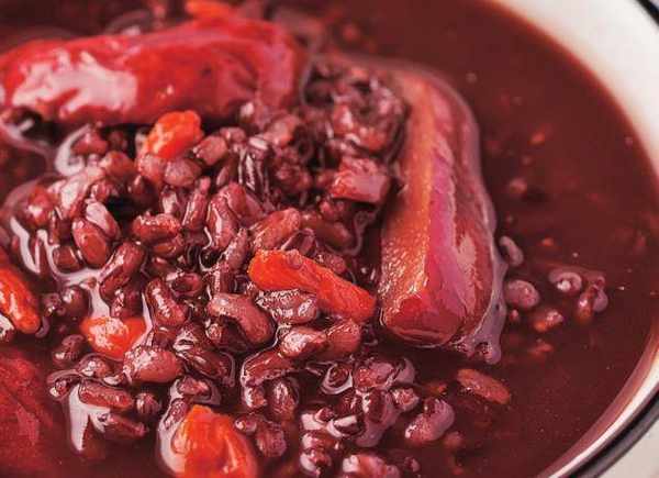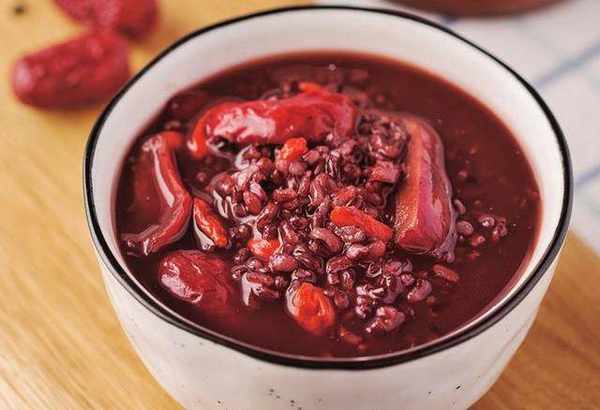 準備材料:阿膠30克,紅棗30克,黑米100克,黑糖30克,枸杞5克