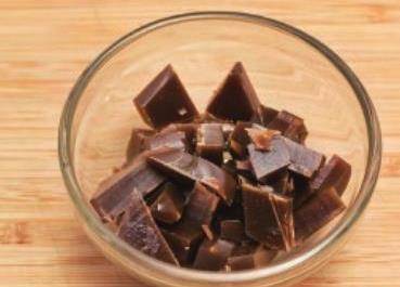 2阿膠搗碎後放入碗中,備用。