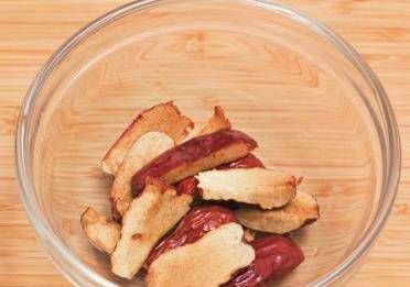 3紅棗洗凈,在溫水中泡軟後去核,切成兩半。枸杞洗凈,在清水中浸泡5分鐘。