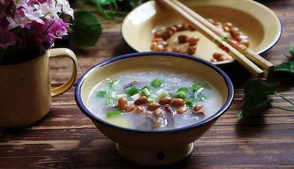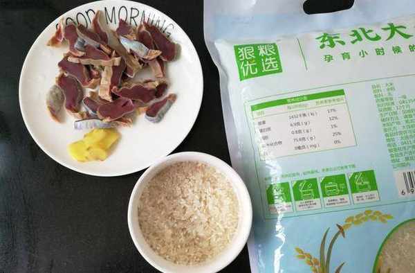 主材料:大米100克,臘鴨胗2個,菜心50克,小蔥3克,花生仁15克,薑3克