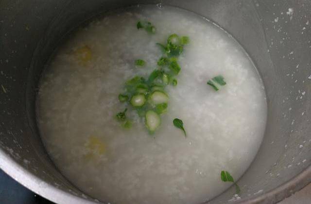 待粥煮60分鐘左右,加入薑片與切小顆的菜心