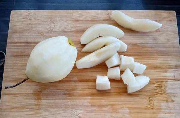 5,梨入鍋前切塊,不要太早切,會氧化;