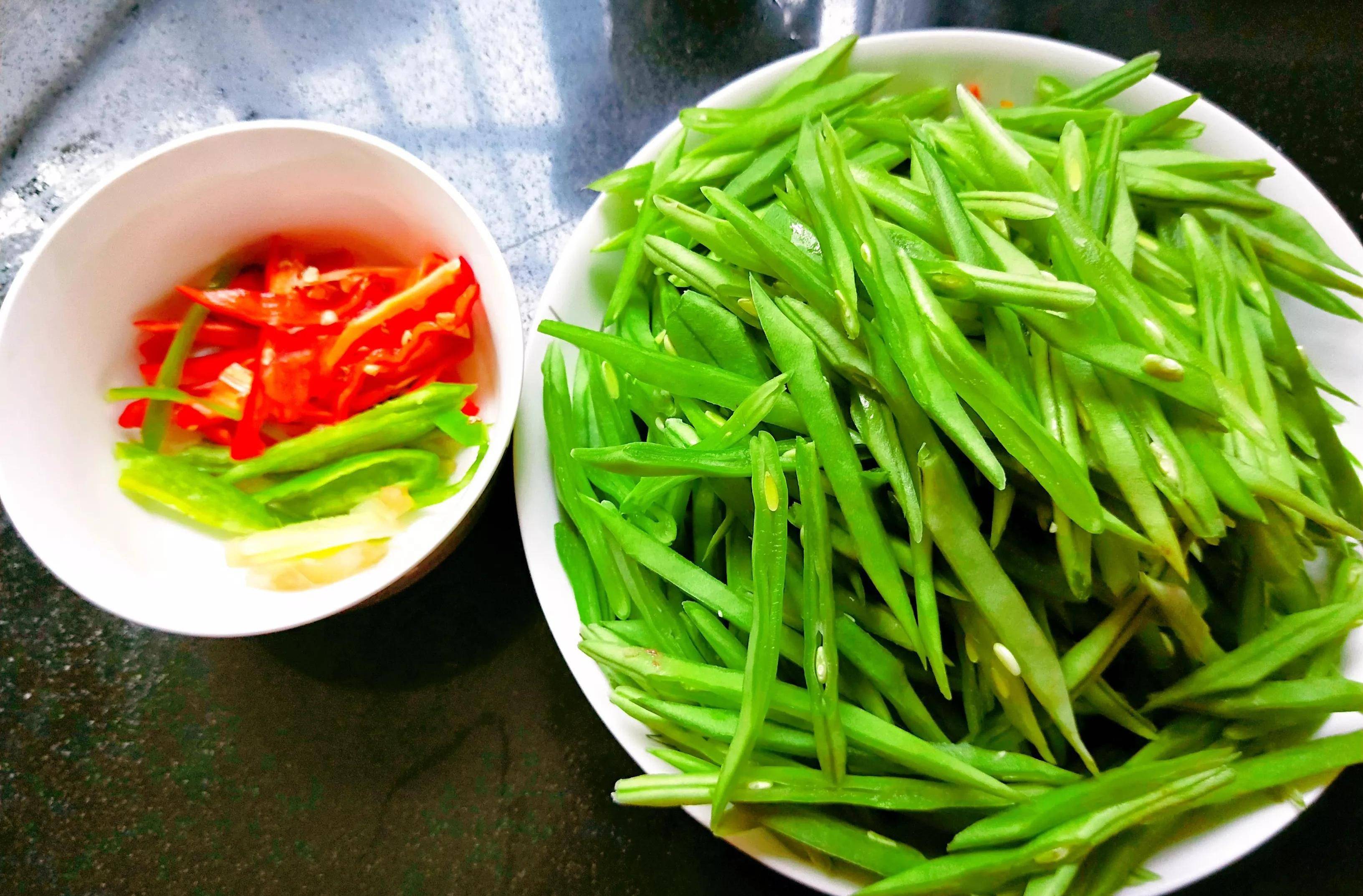 1,刀豆不要焯水,直接炒,這樣炒出來的刀豆絲比焯水後的要脆,口感更好。