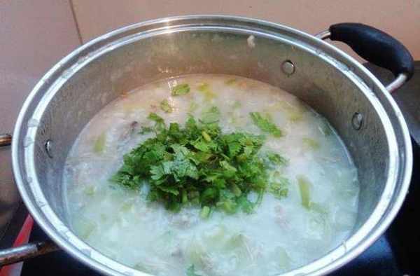 食材:大米100克,鹵鴨腿一隻,冬瓜300克,薑三片,胡椒粉少許、香菜一棵,鹽適量