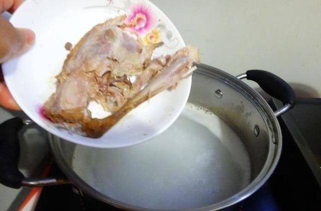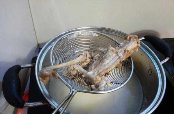 7、鴨骨頭煮十分鐘後撈出扔掉。