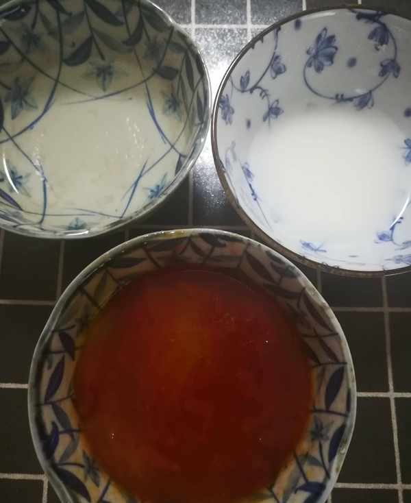 第四步:碗裡加白糖,米醋,番茄醬,少許水調成碗汁,水淀粉備用如圖