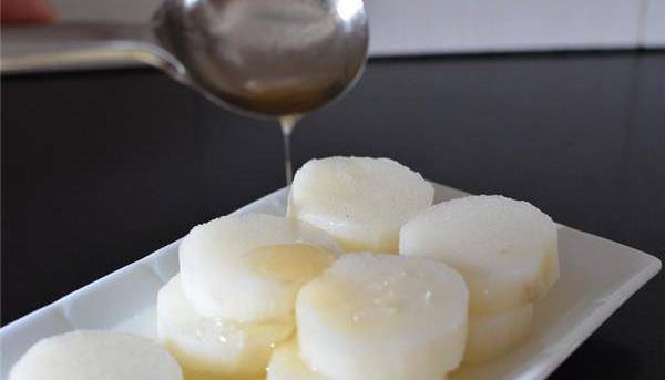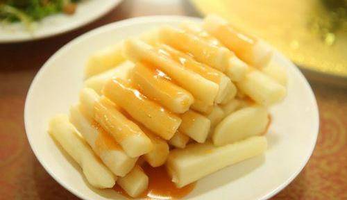 3、六分鐘後,把山藥連帶的湯汁,一塊倒進幹凈的鍋中,開大火把湯汁收至粘稠,擺盤後就可以吃瞭,口感細膩,軟糯香甜,別不當回事,