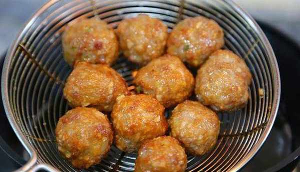 2、鍋裡多來點油,油溫六成熱,把蓮藕肉餡均勻的擠成丸子下鍋,中火炸上三分鐘,直至金黃酥脆後撈出來。鍋留底油,蔥薑蒜八角炒香之後,放一勺蠔油,一勺生抽,少許老抽調色增香,