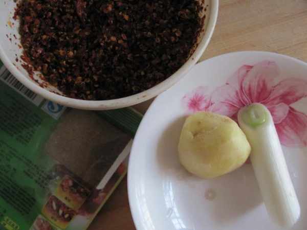 第三步:葱,薑,孜然粉,油辣椒面備好。