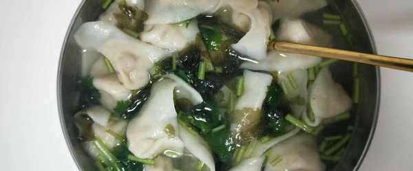 6,鍋中水燒開後,下入小餛飩,用漏勺抄底滑動一下(預防粘鍋),待小餛飩翻瞭身(說明已經熟瞭),即可撈出放入備好的湯料碗中。