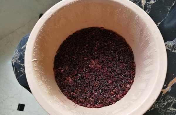 看下,這個就是紫米,紫米可以直接煮飯,也可以和大米和其他材料一起熬粥,現在端午節也要來瞭,用紫米包粽子也是很養生的一種吃法