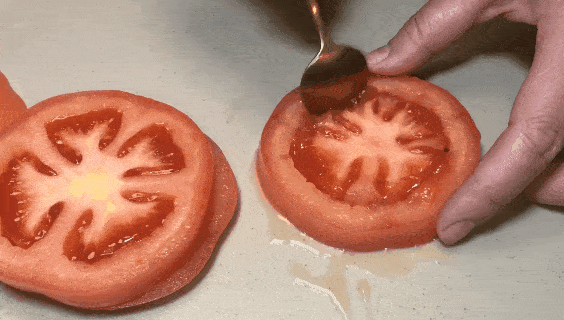 2.將番茄中間部分挖空。