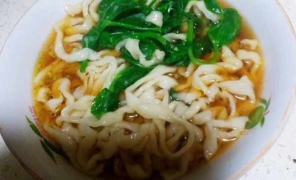 我們吃完粉,剛好有客人來,小姐姐又趕緊做瞭碗豬腳面,客人說太美味瞭,我怕客人不喜歡吃,還讓女兒烤瞭個小披薩,正好我切面之後剩瞭點小面團。