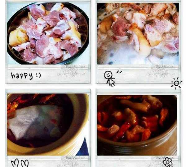8.砂鍋的料熬香後,放入焯好水的豬腳,這步和我的做法有區別,我沒有熬香鹵水,豬腳直接和料一起下鍋鹵,今天看她做,終於發現差在哪裡。