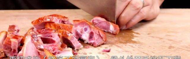 做法:1、選擇臘鴨腿1個,先用砍刀剁開(寬度5厘米),再切成片(約筷子的厚度),骨頭處用手按壓刀背就可以切開。