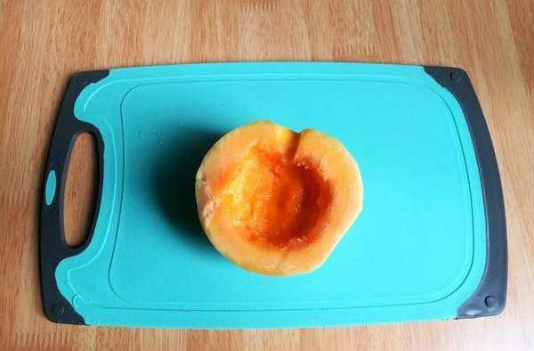 第二步:南瓜削掉外皮,去瓤去籽,清洗幹凈瀝一下水分。傢裡煮菜剩瞭半個南瓜將就用瞭,平時用老南瓜做出來更好看一些。