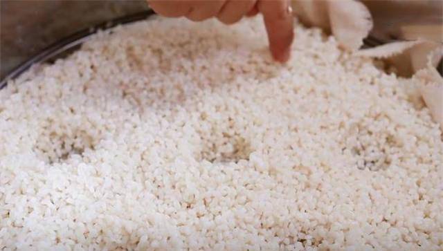 2.蒸糯米之前鋪一張籠佈,用手指戳幾個小孔出來,這樣蒸氣散發得快,糯米熟的也會更快一點,水開後蒸30分鐘。