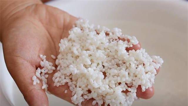 1.做涼糕我用的是這種圓粒的糯米,如果你們傢有長粒的味道會更好,一直泡到這種一掐就斷的程度就可以瞭。