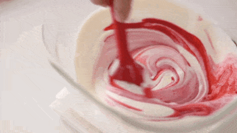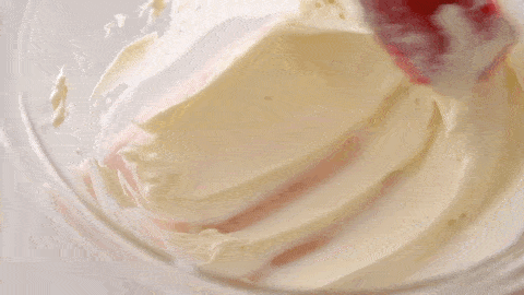 分出230g奶油奶酪糊,倒入剛開始做好的樹莓果醬,充分翻卷均勻。