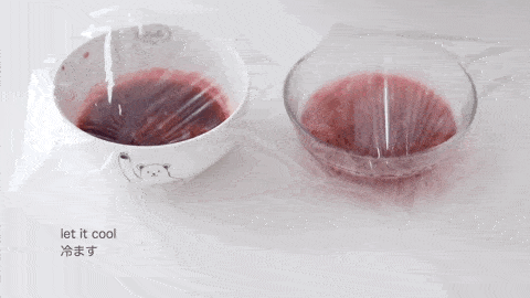一份是濃稠的樹莓果醬,一份是稀釋的樹莓糖漿水,都蓋上保鮮膜入冰箱冷藏備用。