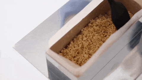 消化餅幹碾碎,倒入融化的無鹽黃油充分攪拌均勻,然後倒入模具中壓平壓緊實,送入冰箱冷藏凝固。