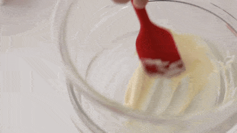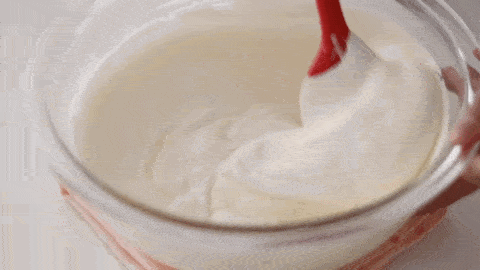 200g淡奶油分3次倒入白巧中,充分攪拌融合。