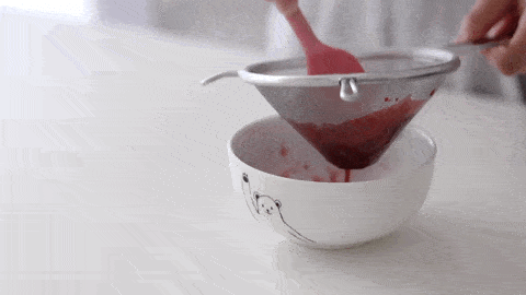 煮好的樹莓果醬過篩出來,過篩後的樹莓果渣不要扔掉。