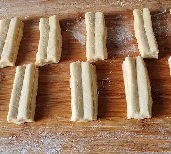 第6步、再用筷子在中間壓一條印痕,使其炸制不散。