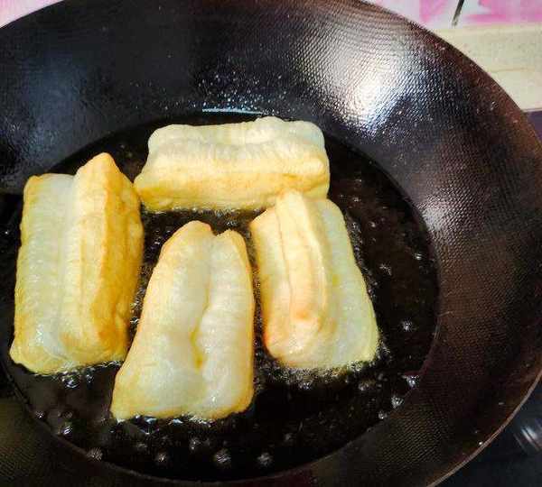 第9步、下入油條生坯炸制。