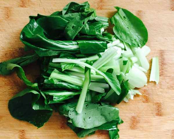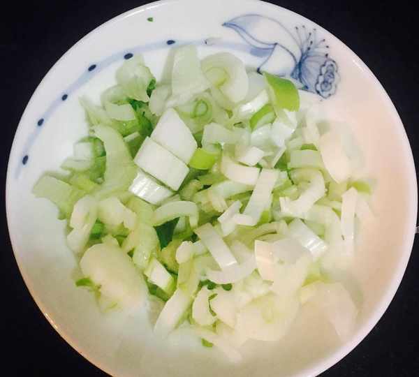 大蔥剝去外皮清洗幹凈切成蔥花,青菜擇洗幹凈切成段