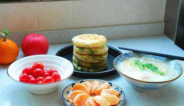 早上時間雖然匆忙,但這頓營養豐富的早餐,有蛋有面有蔬菜,還有自己烙的蔥香油餅,早起來半個小時就能搞定。