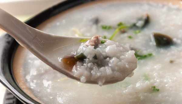 做法二,食材:大米適量,薑1塊兒,皮蛋2個,鹽,瘦肉1塊。1:加一匙食用油和適量清水浸泡一小時以上備用,鍋內溫水加兩片薑放入肉焯至水沸肉的表皮發白,撈出備用。2:皮蛋分別切丁薑切成末,鍋內加水讓調羹仰面躺在鍋底。3:加入浸泡好的大米、焯水洗凈的肉塊兒、一勺鹽、一半兒薑末、一個皮蛋丁中火煮開後小火煮約一個小時。4:把肉撈出來下手撕碎,把肉碎,剩下的皮蛋和薑末繼續放到粥裡煮約15分鐘。5:最後灑香蔥或香菜末裝碗即成。