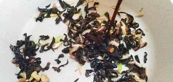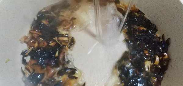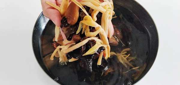 泡好的木耳,香菇和黃花菜用手充分抓洗幹凈去除雜質,多換幾次水直到清澈,攥幹水分