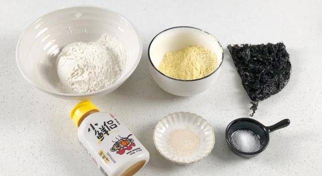 10克紫菜、60克玉米面、160克面粉、酵母2克、小鮮侶調味汁、鹽2克、油少許、溫水200克