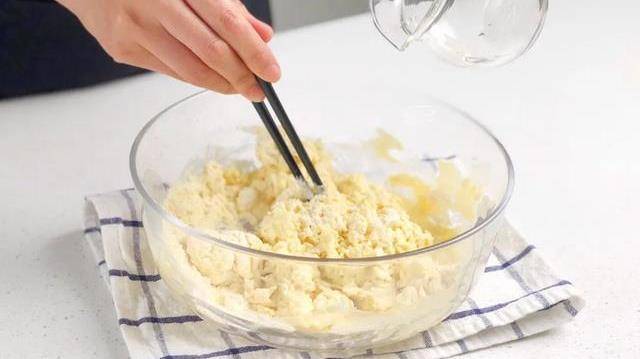 3、碗中倒入160克面粉、60克玉米面、2克鹽、2克酵母、200克溫水邊倒邊攪拌;