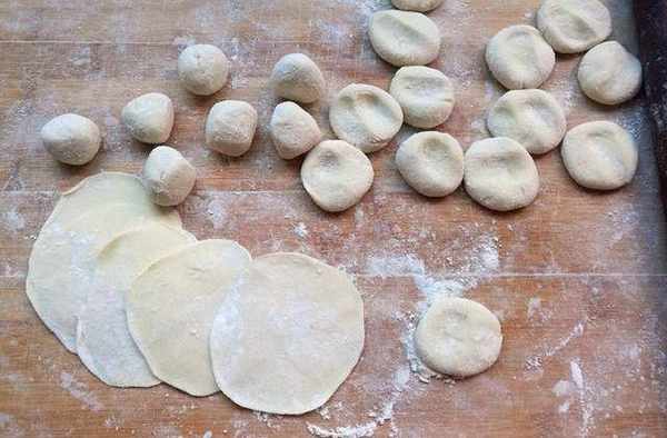 6、取出面團,用力揉勻,揉成長條,做成小劑子,搟面杖搟成圓形餃子片。