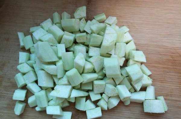 2、將茄子去皮後切成小丁狀;