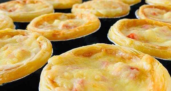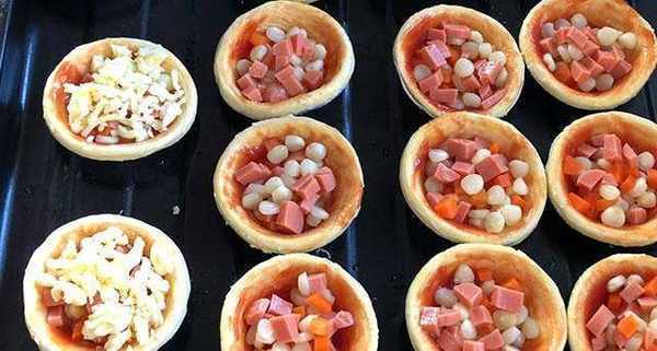 蛋撻皮、玉米、胡蘿卜、火腿腸、番茄醬/披薩醬、芝士碎