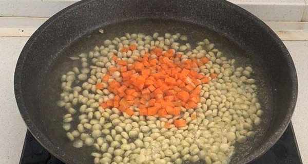 第二步:把準備好的玉米粒和胡蘿卜都放入清水中,煮3分鐘左右撈出來,瀝幹水分備用。