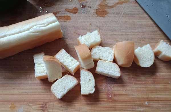 3,將面包切丁,丁的大小隨自己喜歡。