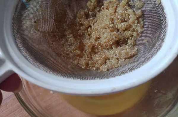 2,撈出藜麥控水,待用。煮好的藜麥是透明狀的,周圍帶一圈白色的小尾巴。