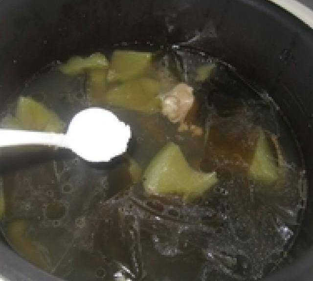 涼瓜裡面的白瓢去得幹凈,就沒有那麼苦瞭!血壓低的人最好慎飲此湯!因為海帶具有降血壓的作用~