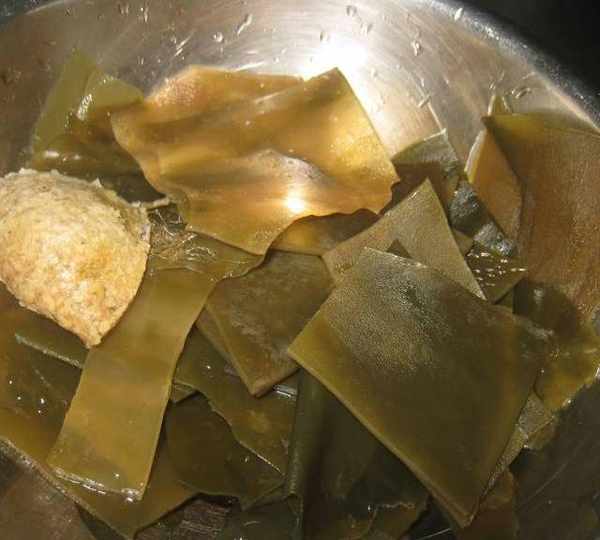 第2步、海帶和陳皮提前泡發,然後洗凈,切成適量大小備用;