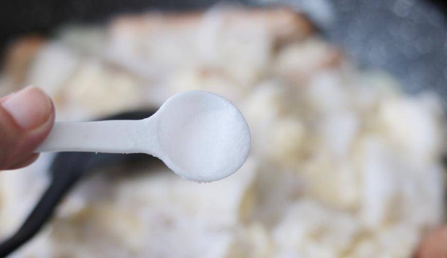 7、湯裡加入少許雞汁,調味。如果用骨頭湯就不用加雞汁瞭。