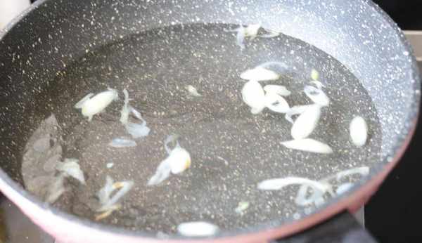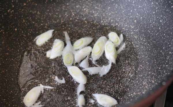 4、鍋裡放入植物油燒至六成熱,放入蔥花爆香。