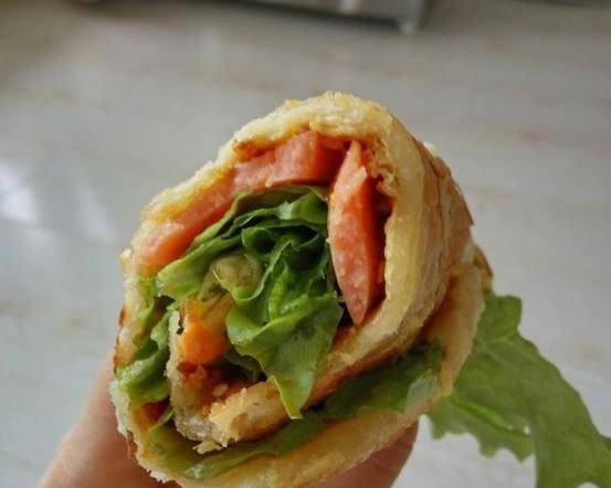 等到面餅搟好以後,準備一口平底鍋在鍋底刷上適量的食用油,等鍋熱以後就可以把面餅放在鍋裡邊烙制瞭,等到一面烙至成熟以後,把面餅翻個面烙至另一面,然後我們準備一個雞蛋打在面餅上面之後,用筷子可以慢慢的把雞蛋攪散,讓雞蛋液均勻的鋪滿面餅的表面之後再進行方面,等到雞蛋煎至凝固以後就可以再翻過來瞭,然後刷上一下黃豆醬或者是甜面醬之後再卷上自己喜歡的蔬菜,然後再把剛剛切好的火腿腸放在鍋中煎首卷在面餅上就可以吃瞭。做法非常的簡單,就算是廚房小白也是能夠做成功的,如果你也喜歡就趕緊試試看吧。