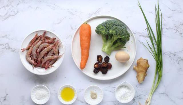 【鮮蝦蔬菜餅】用料:鮮蝦200克胡蘿卜1根雞蛋1隻西蘭花半顆小香菇5-8個薑15克蔥15克淀粉15克鹽2克橄欖油適量白胡椒粉少許